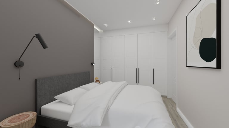 Išspręsta mažų butų problema - daug vietos daiktų pasidėjimui ir sandėliavimui vizualiai neapkraunant erdvės.