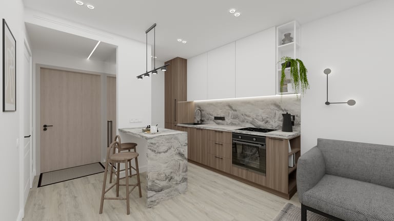 Butas modernaus stiliaus, parinktos praktiškos, lengvai prižiūrimos apdailos medžiagos. Erdvi bendra svetainės ir virtuvės zona, apjungianti prieškambarį. Atskiras miegamojo kambarys poilsio užtikrinimui,„mini spa" primenantis funkcionalus vonios kambarys.