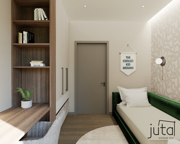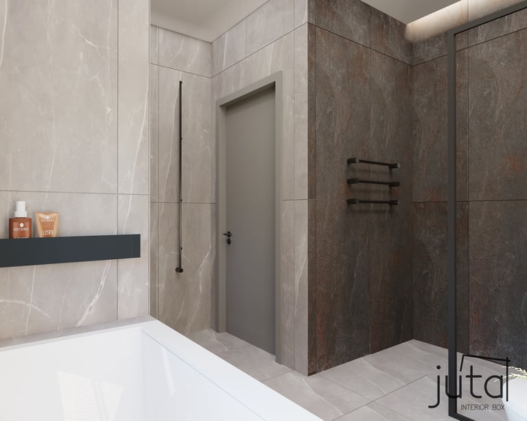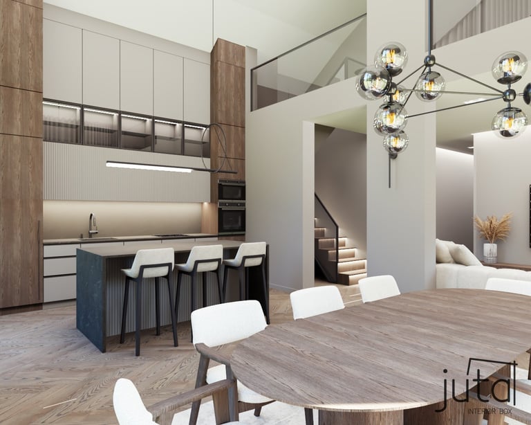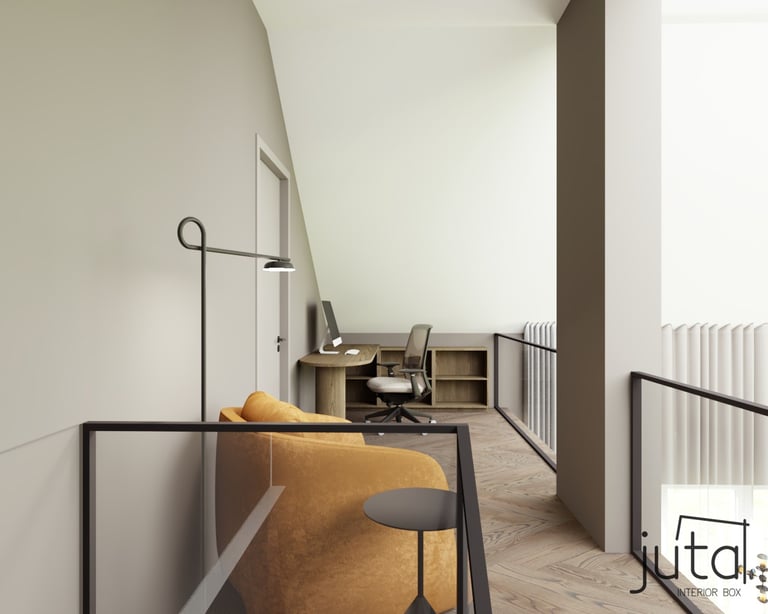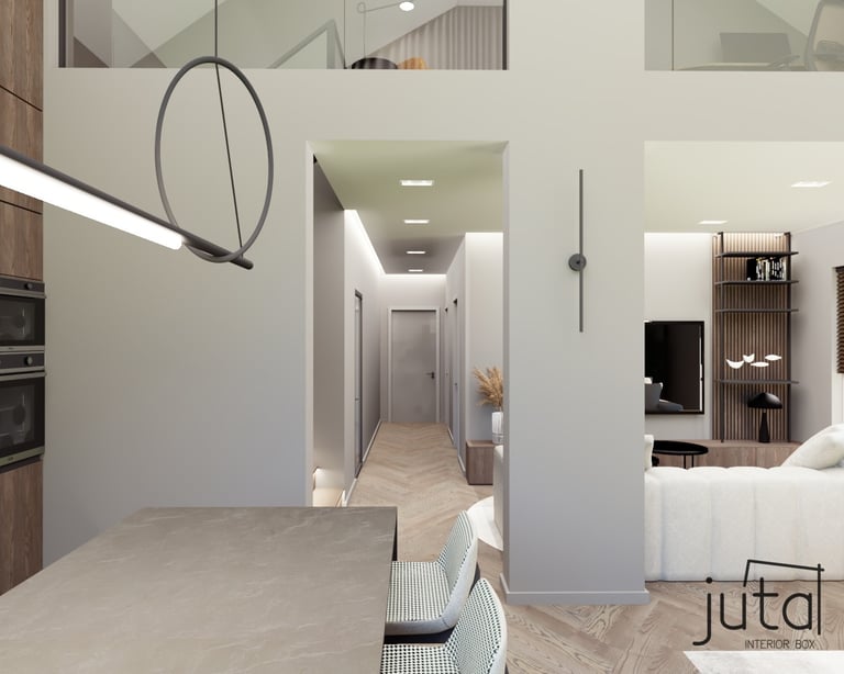 Butas projektuotas nuomai. Atsižvelgiant į šį kriterijų projektuotas žemiškų spalvų interjeras, kuris gali būti lengvai pagyvinamas ryškių akcentų ir interjero detalių pagalba, priklausomai nuo būsimų gyventojų šiuose namuose.