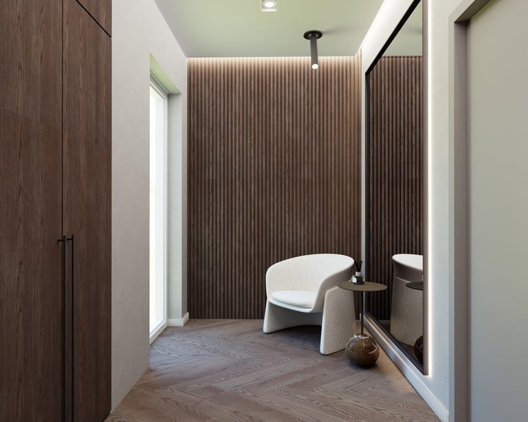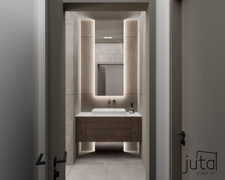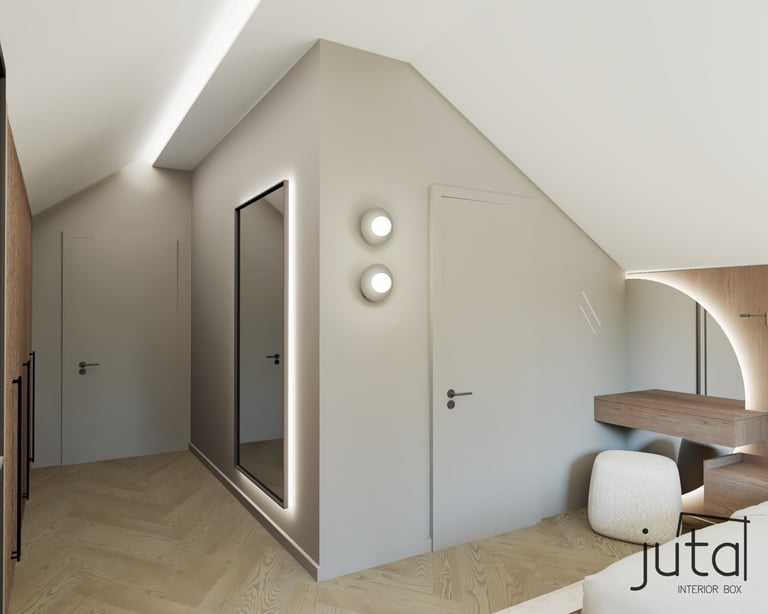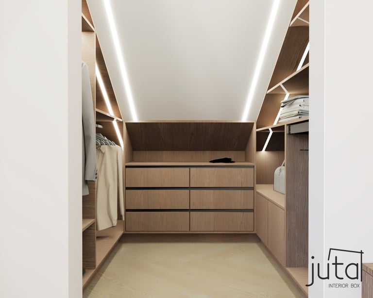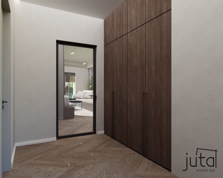 Išspręsta mažų butų problema - daug vietos daiktų pasidėjimui ir sandėliavimui vizualiai neapkraunant erdvės.
