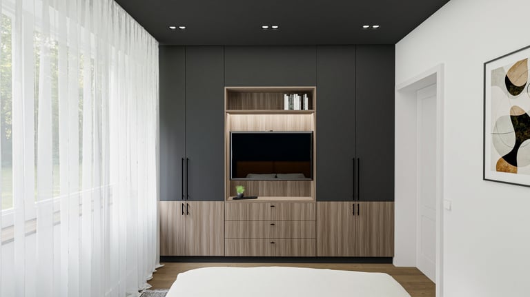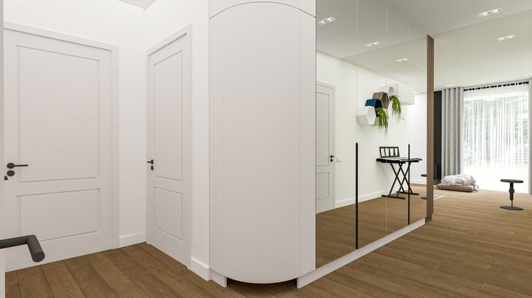 Išspręsta mažų butų problema - daug vietos daiktų pasidėjimui ir sandėliavimui vizualiai neapkraunant erdvės.